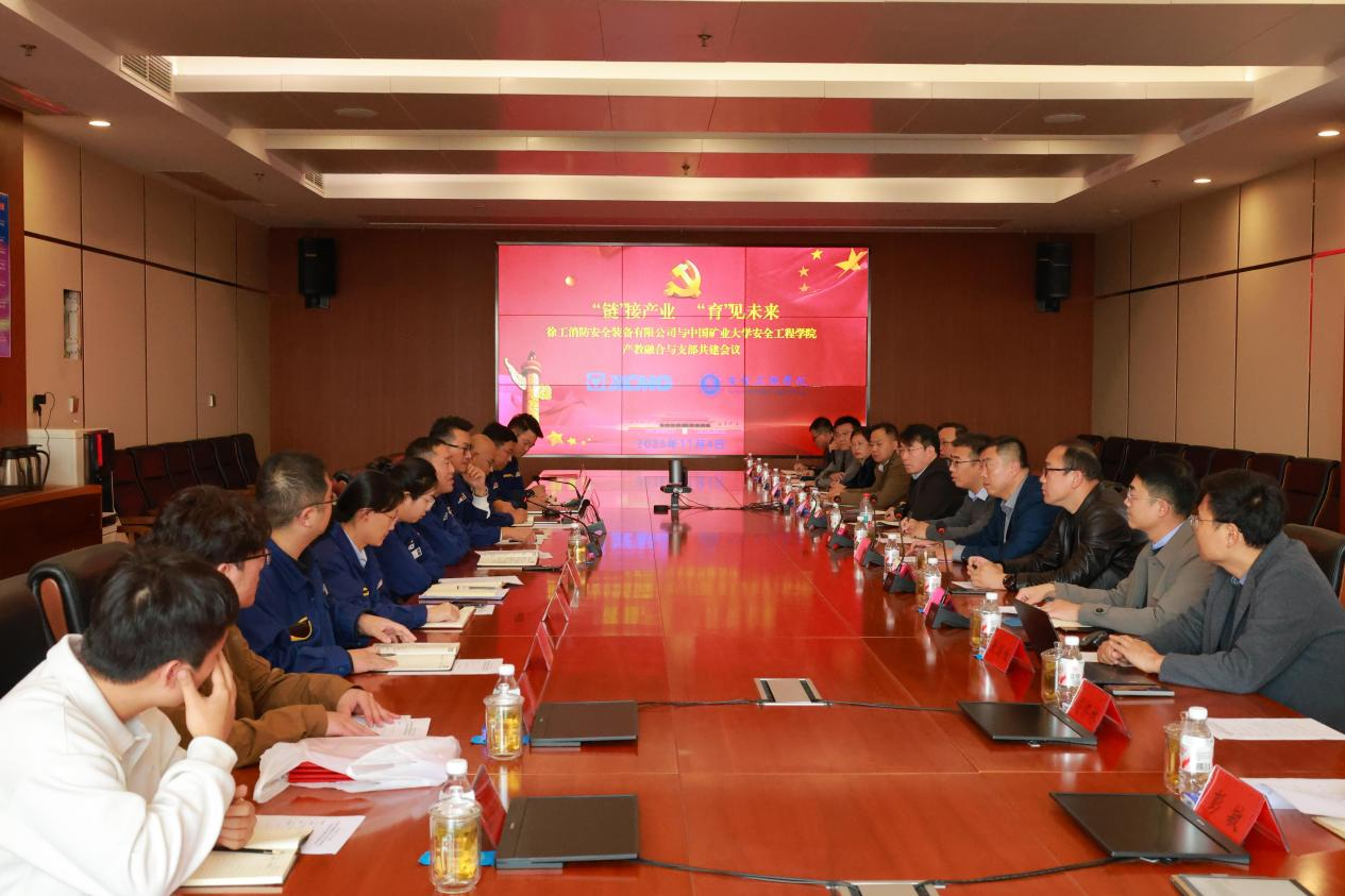 2025年11月4日下午,我院消防与公共安全研究所与徐工消防安全装备有限公司在徐工消防办公楼501会议室举行了“‘链’接产业,‘育’见未来”—产教融合与支部共建会议。我院党委书记宋冰、副书记邵波、副院长刘晓斐、消防与公共安全研究所所长安伟光,徐工消防副总经理徐小东、徐工消防安全装备研究院副院长、党支部书记张军等双方单位负责人及教师代表参与交流,会议由徐工消防救援装备研究所所长高志刚主持。