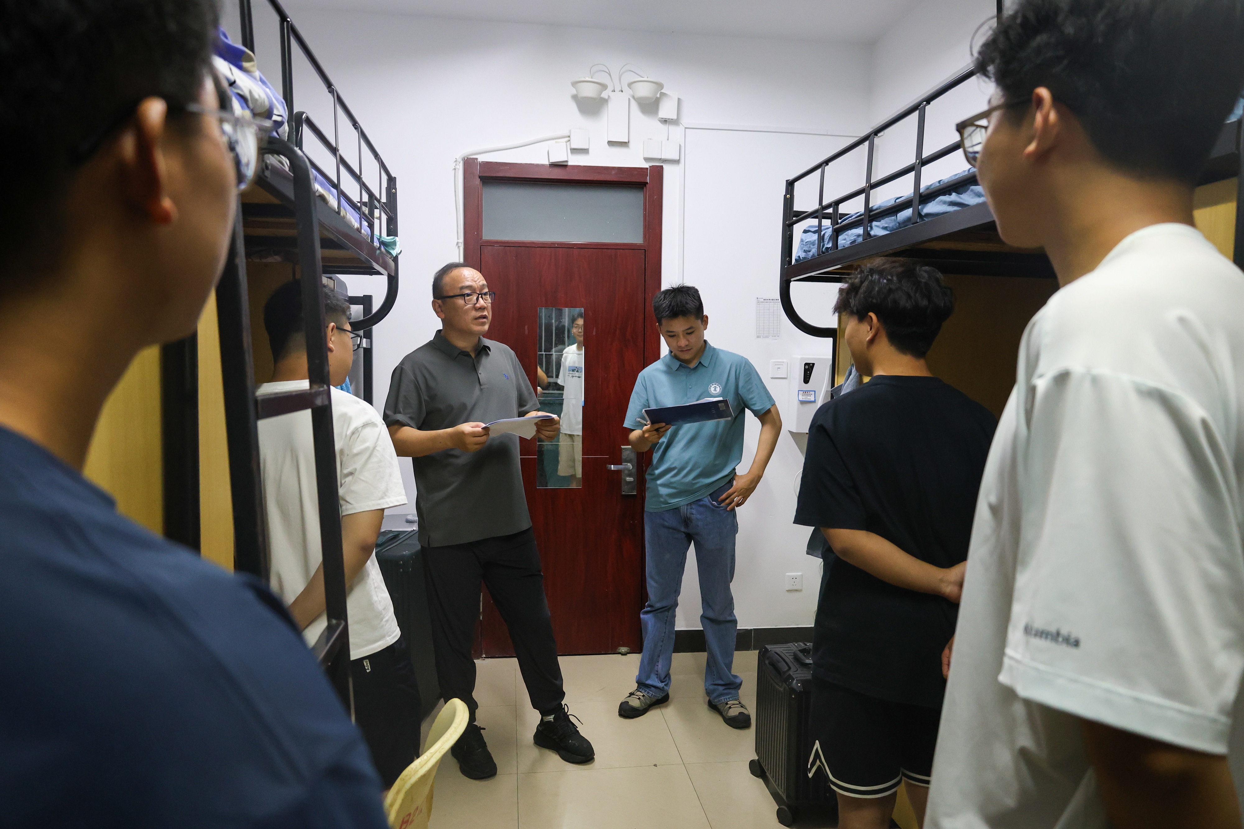 新学期伊始,为深入了解各年级学生返校动态,全面深入了解2025级新同学情况,帮助其更快地适应大学生活,在全院范围内营造整洁安全、积极向上的学习生活环境,由学院党委副书记邵波带队,学院全体辅导员深入各年级学生宿舍,开展学期初集中走访检查工作。