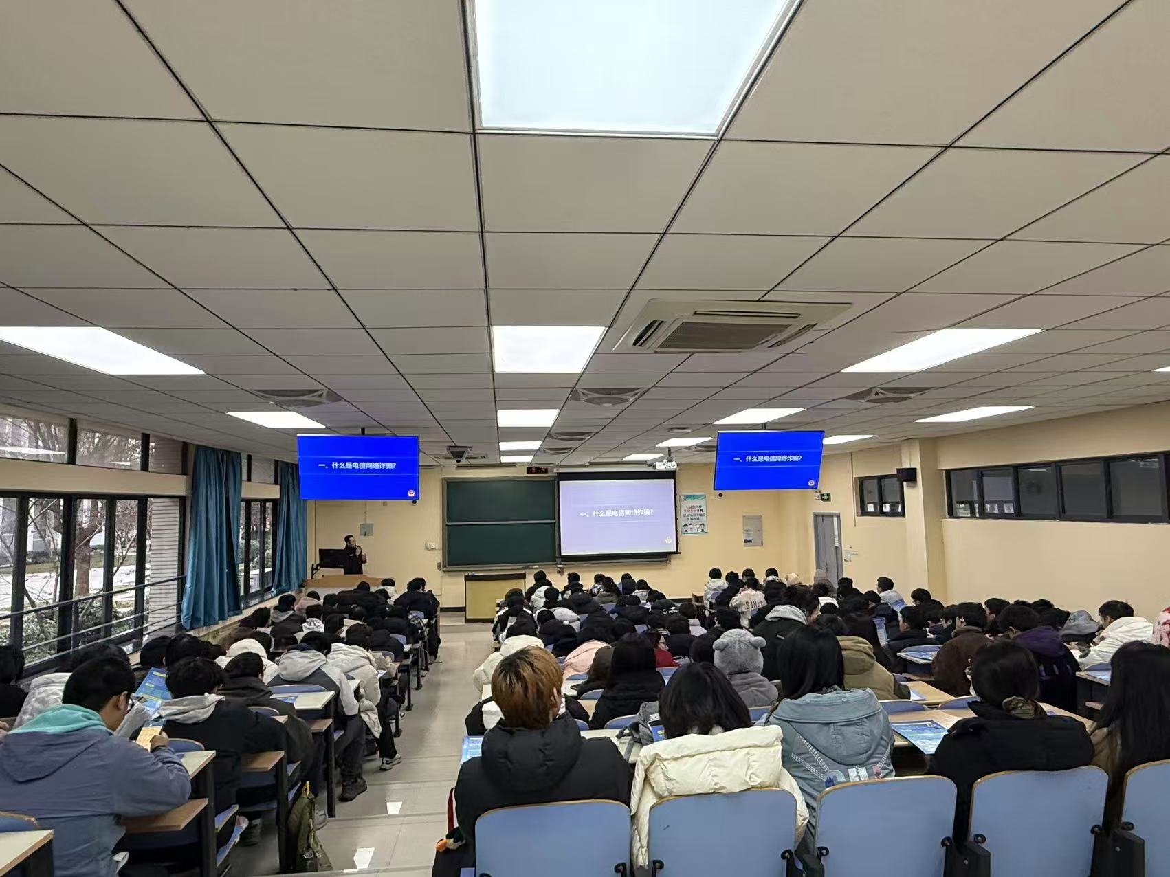 为切实增强学生防诈骗意识和自我保护能力,筑牢校园安全反诈防线,12月31日,学院特邀徐州市公安局刑侦支队民警刘磊于博四A103为2023级本科生开展反诈科普讲座。
