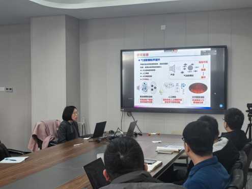 讲座前,彭正标老师介绍了研究院在职业危害防控、粉尘治理等方面的研究进展,双方就科研合作、资源共享等进行了交流。凡凤仙教授以职业场所细颗粒物污染为主题,系统阐述了气溶胶对环境与健康的影响,并结合典型行业分析了超细粉尘的危害机制。她从理论、实验与模拟等角度,介绍了声场作用下气溶胶凝并机理及团队最新成果,为粉尘防控提供了新思路。在交流环节,师生围绕矿山粉尘治理、技术转化等提出问题,凡凤仙教授逐一回应,现场讨论深入。