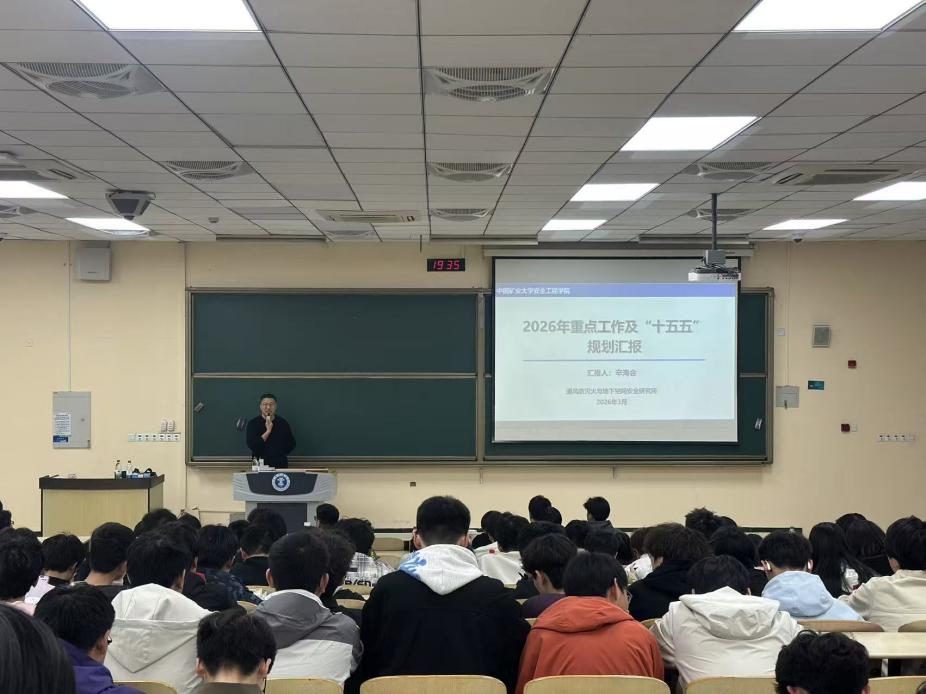 为帮助2025级本科生深入了解安全工程专业内涵与发展方向,3月25日,学院在博学楼4-B101举办“磐石计划”专业导航分享会,通风防灭火与地下空间安全研究所辛海会教授担任主讲,2025级辅导员魏铁飚、贾言哲及全体学生参加。