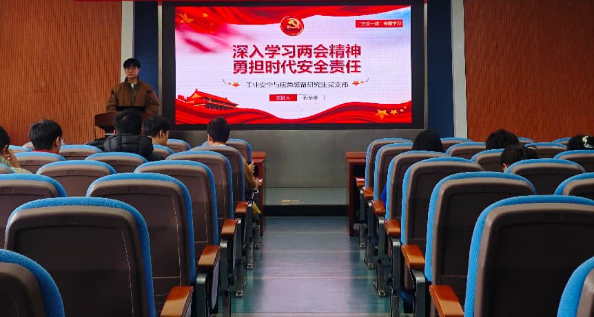 为深入学习贯彻2026年全国两会精神,3月23日,学院工业安全与应急装备研究生党支部组织开展“聚焦两会精神,强化专业担当”专题党课学习,支部全体党员参加。