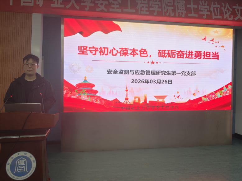 为加强党员党性修养,强化使命担当,3月26日,安全监测与应急管理研究生第一党支部在矿业科学中心A200开展专题党课学习。支部全体党员参加。