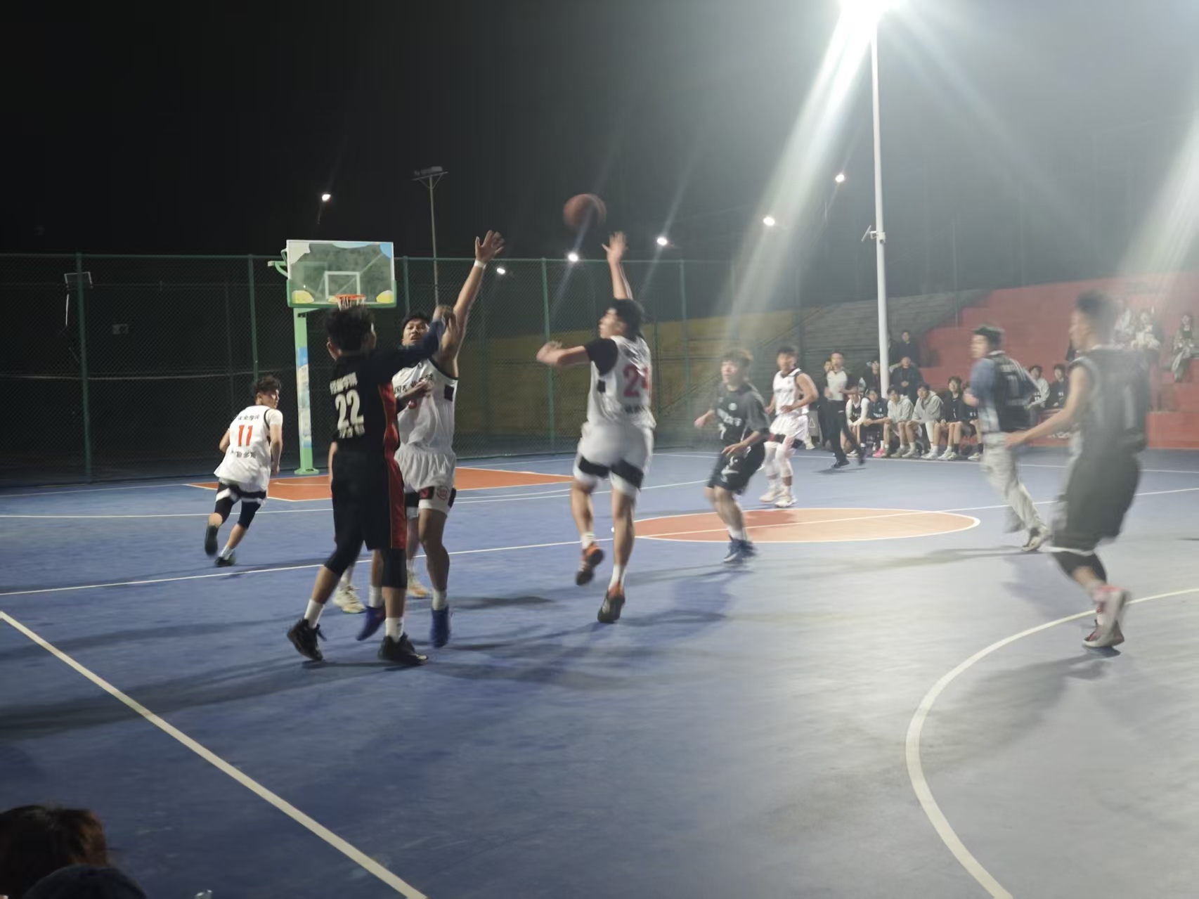 3月31日,学院篮球队在南湖校区第二运动场参加“行健杯”篮球小组赛,本场对阵经济管理学院,现场氛围热烈高涨。