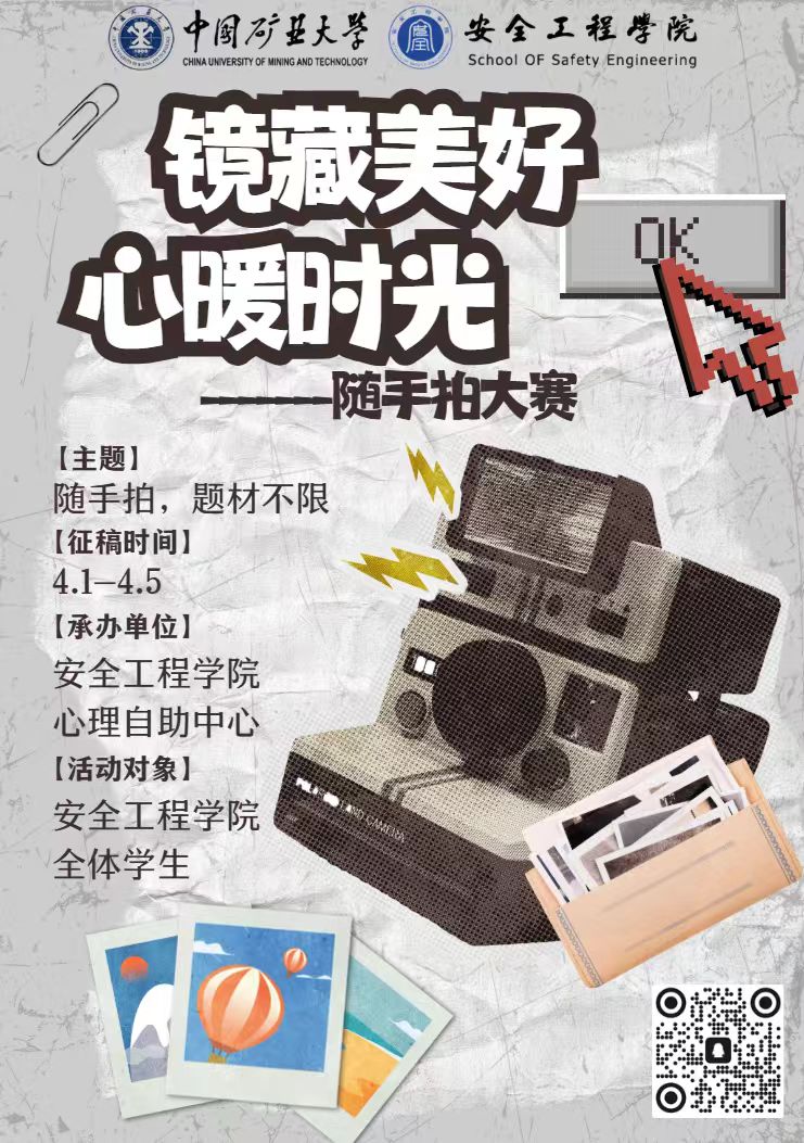 为丰富同学们的文化生活,4月1日到5日,学院举办了“镜藏美好,暖心时光”随手拍大赛。本次活动由学院心理自助中心承办,面向全院学生开展。