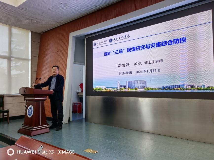 1月11日,寒假前一日,中国矿业大学安全工程学院报告厅内气氛庄重而热烈。学院特聘教授、我国煤矿安全与煤层气开发领域著名专家李国君,为全院师生带来了一场题为“煤矿‘三场’规律研究与灾害综合防控”的专题报告。此次报告不仅是学术盛宴,更是一次精神的回归与传承。